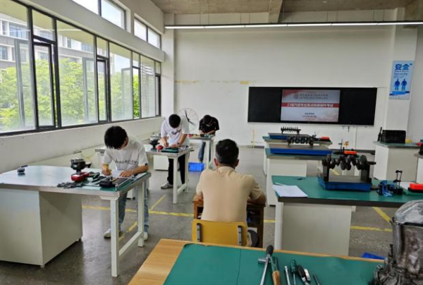 D2310班35名“汽车医生”上演发电机拆装竞速赛与应知竞赛,各位选手技能娴熟,动作敏捷;大家争分夺秒,角逐激烈,彰显创业匠才的精工精艺。最终吴瑞博、曾子豪分别斩获第一名。