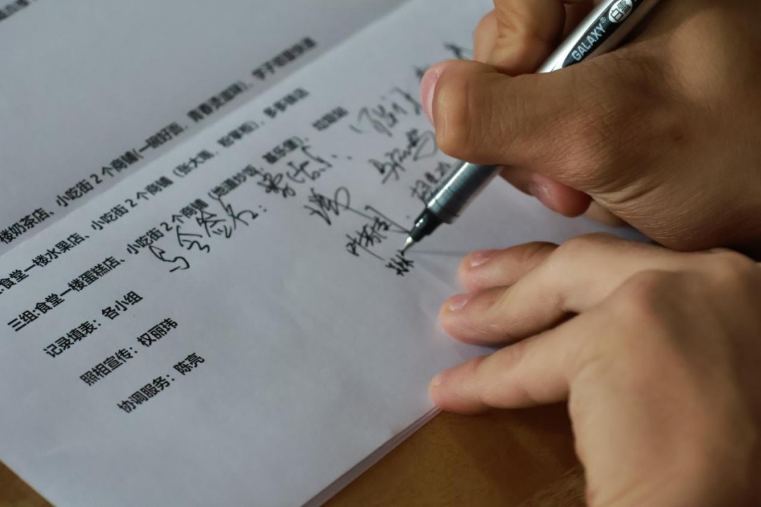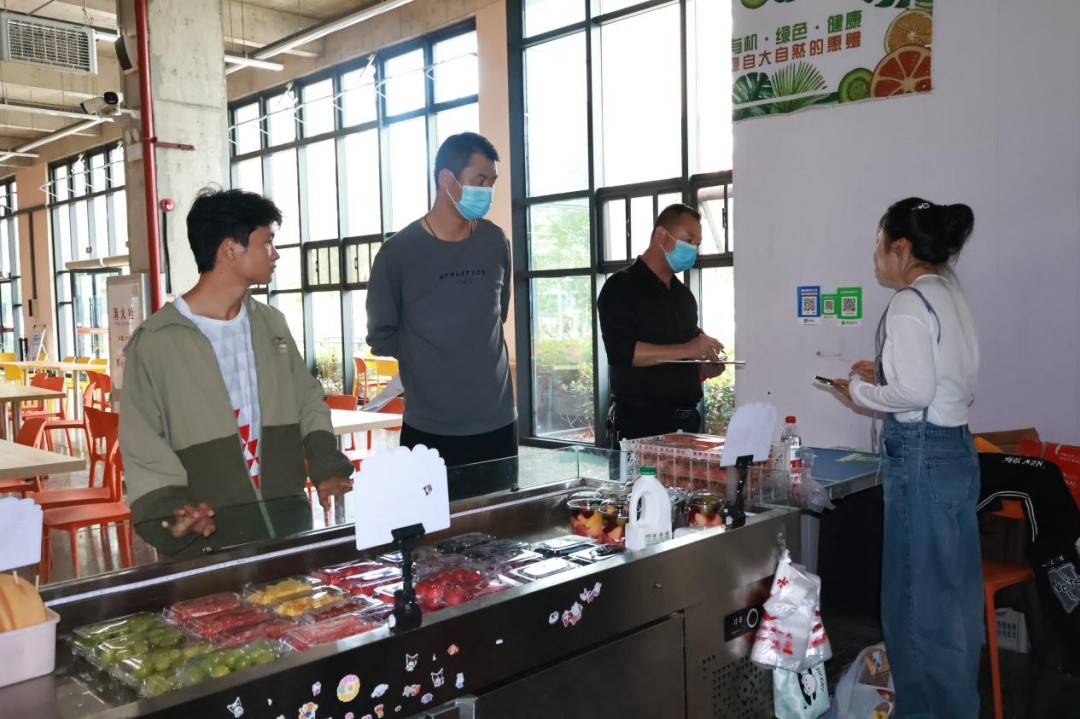 检查组深入食堂后厨、食材仓库、就餐区、校内超市及小吃街商铺,严格对照检查标准逐项核验。学生代表全程参与监督,仔细查阅食材采购台账、检疫证明,核验食品保质期与留样记录,并认真检查后厨卫生分区、消防设施完备性及疏散通道畅通情况。