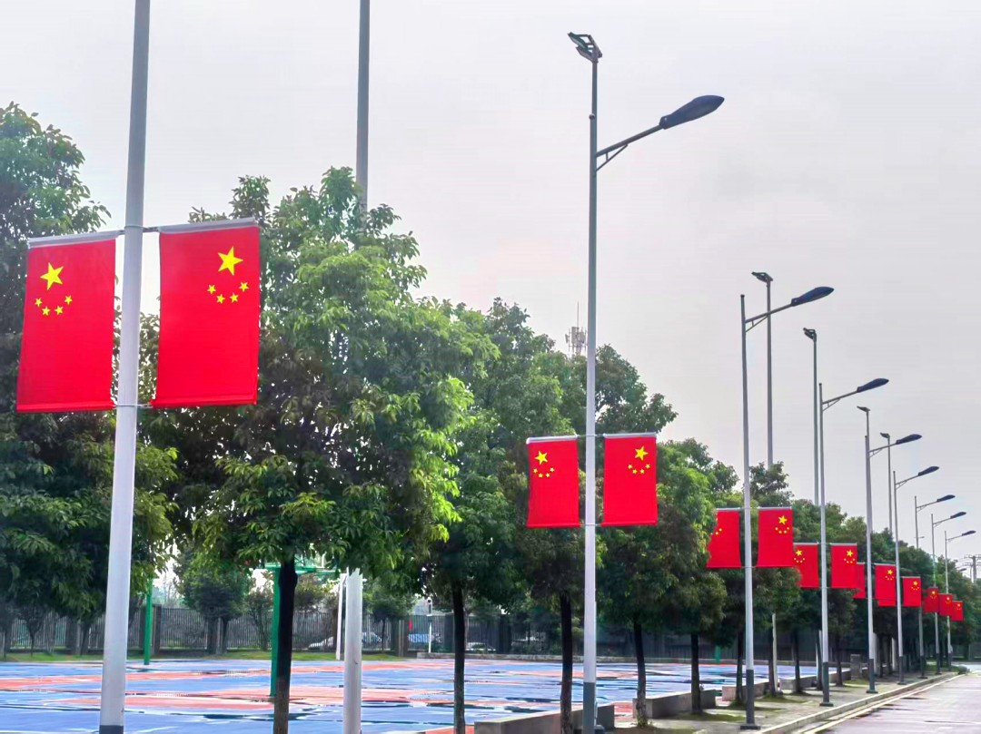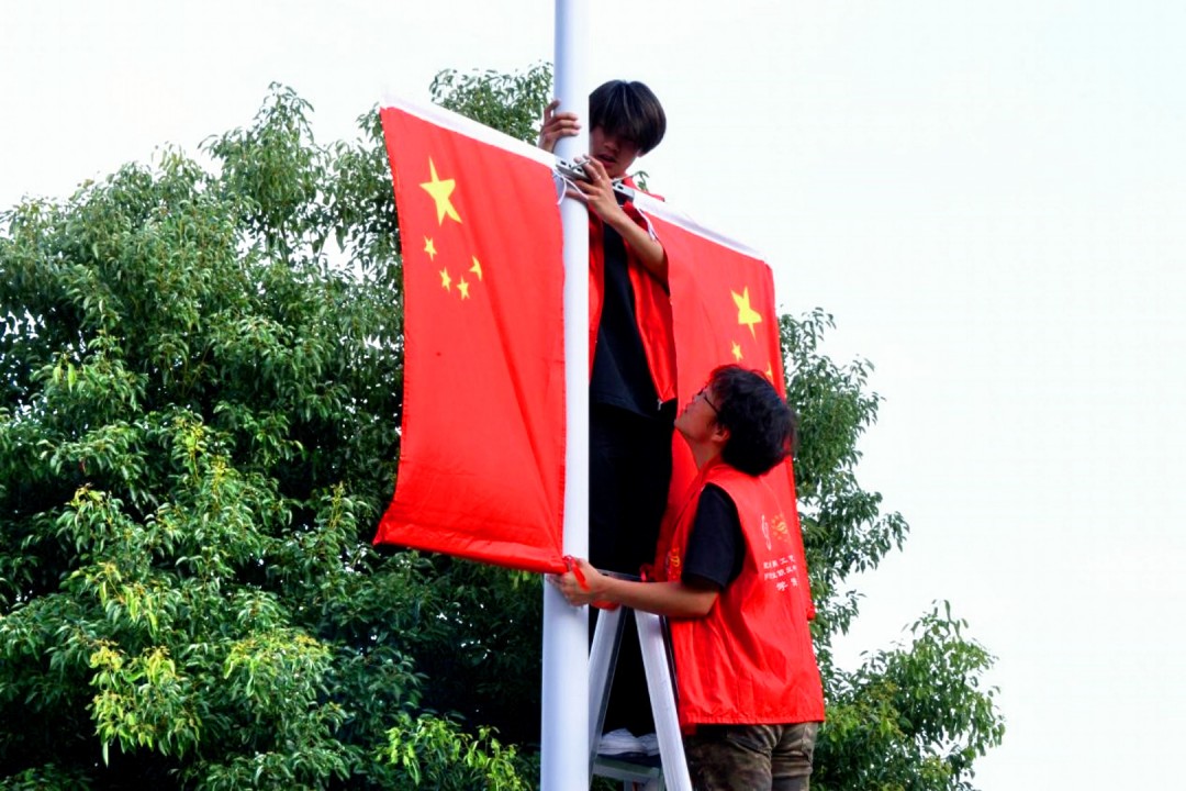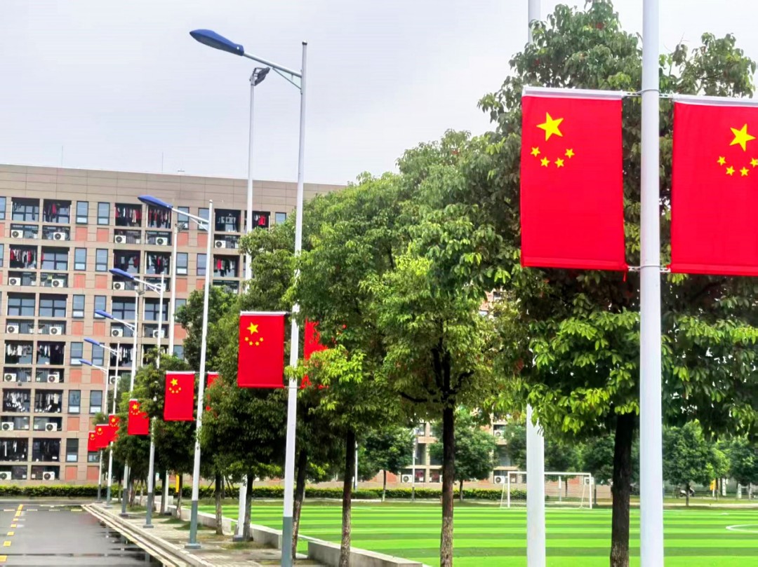 金秋时节,为迎接新中国76周年华诞,校园处处跃动着喜庆的“中国红”,爱国热情洋溢在每一个角落。