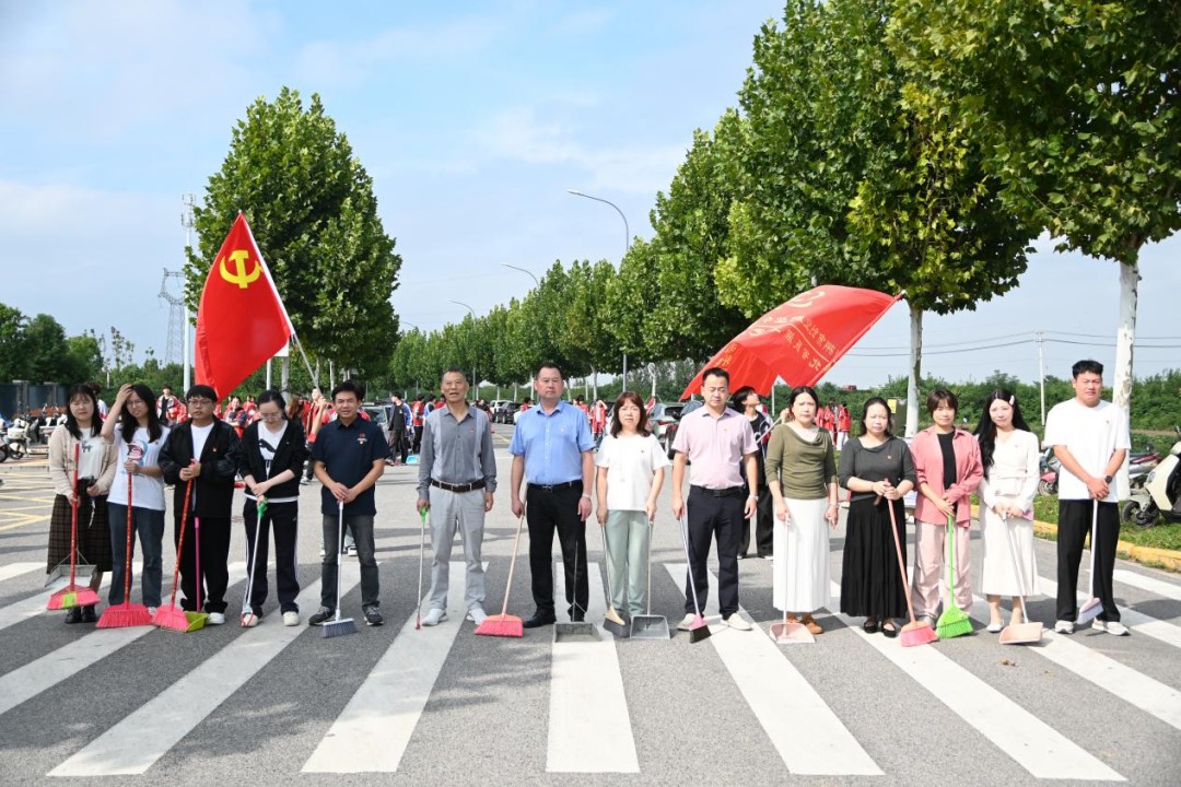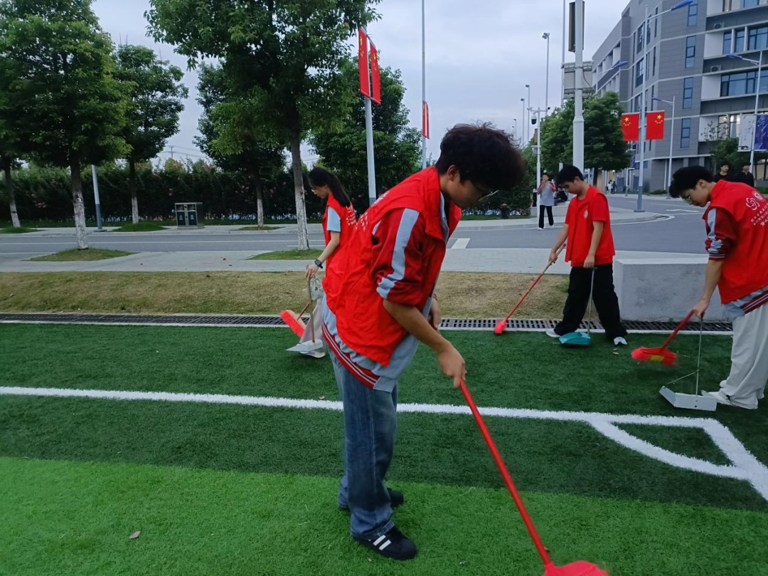 与此同时,一场“洁净校园迎国庆”的行动火热展开。师生志愿者手持扫帚、抹布,深入主干道、教学楼周边及公寓楼下,默契协作,细心清扫。汗水挥洒间,路面更洁净,角落更清爽,校园“颜值”焕然一新。这份整洁,与飘扬的旗帜、喜庆的灯笼交相辉映,是师生用劳动献礼国庆、践行爱国担当的生动体现。