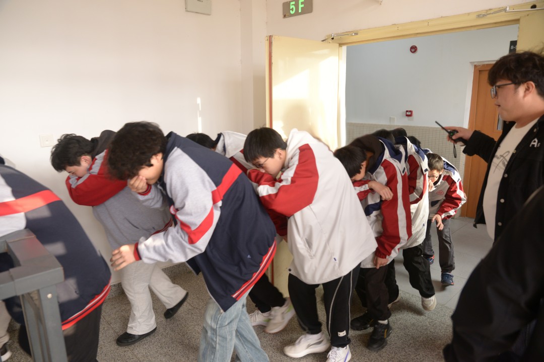 接到指令后,各楼层指导老师迅速组织学生启动应急疏散程序。同学们按照预先掌握的消防知识,捂住口鼻,保持弯腰低姿,沿着墙壁快速有序地向公寓外疏散。整个疏散过程中,学生们不慌不乱、配合默契,指导老师全程在关键节点引导,及时纠正不规范动作,有效避免了拥挤、踩踏等风险隐患。