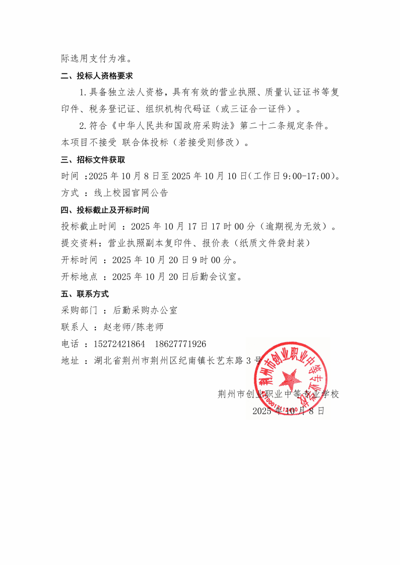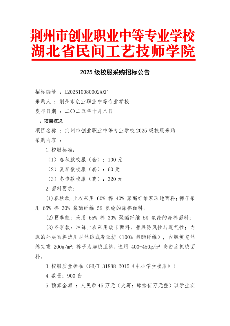 2025年荆州市创业职业中等专业学校学生校服招标书.pdf