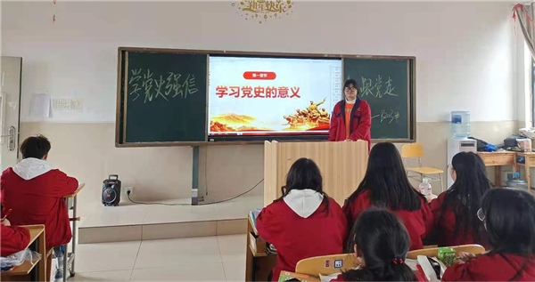 在宣讲党史的同时,也结合实际,融入了校规校纪教育和创建文明校园教育。融合了“爱党、爱国、爱校”等元素的党史教育主题班会课,不仅帮助学生达到“学史明理、学史增信、学史崇德、学史力行”的学习效果,也坚定了同学们跟党走的决心。